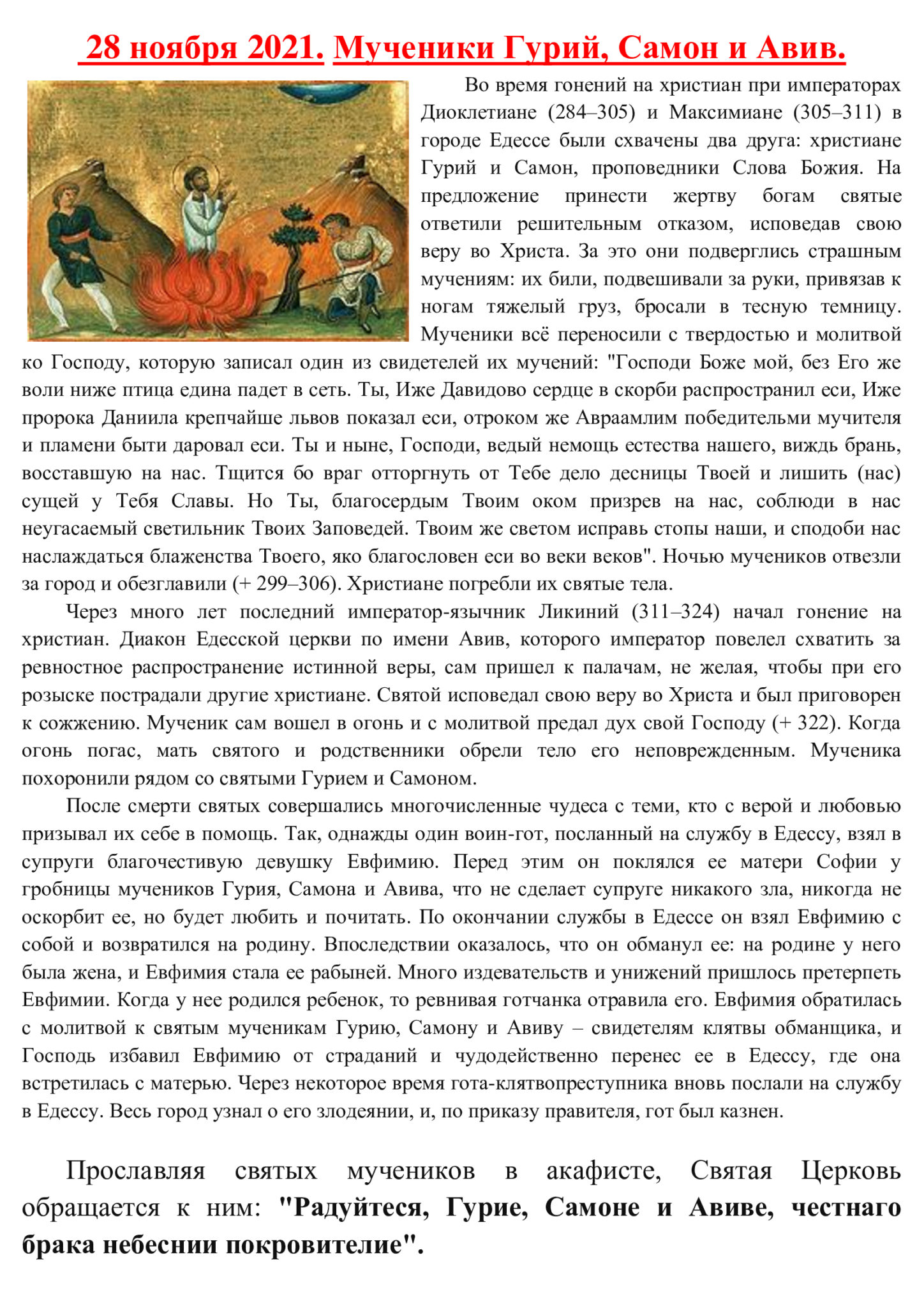 Мучеников и исповедников Гурия, Самона (299-306) Авива (322). Прп. Паисия Величковского (1794).